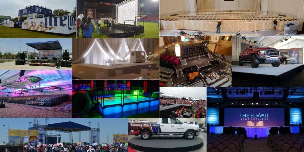 Texas Stage Rental has provided rental stages for all types of indoor and outdoor events since 2006 all over Texas, including Dallas, Houston, San Antonio, and Austin. We also find ourselves on the other side of the Red River occasionally in Tulsa, Durant, and Oklahoma City handling stage rentals for our clients! Our in-house metal and wood shops allow us to build the custom rental stages that our clients have come to rely on for innovative and engaging structures for all types of live events.